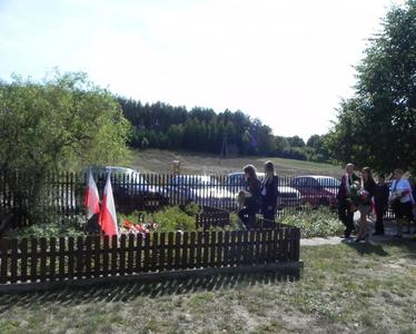 Uczennice złożyły kwiaty przy płycie pamiątkowej ku czci Tadeusza Zawadzkiego „Zośki” i tablicy ku czci rolników z Sieczych.