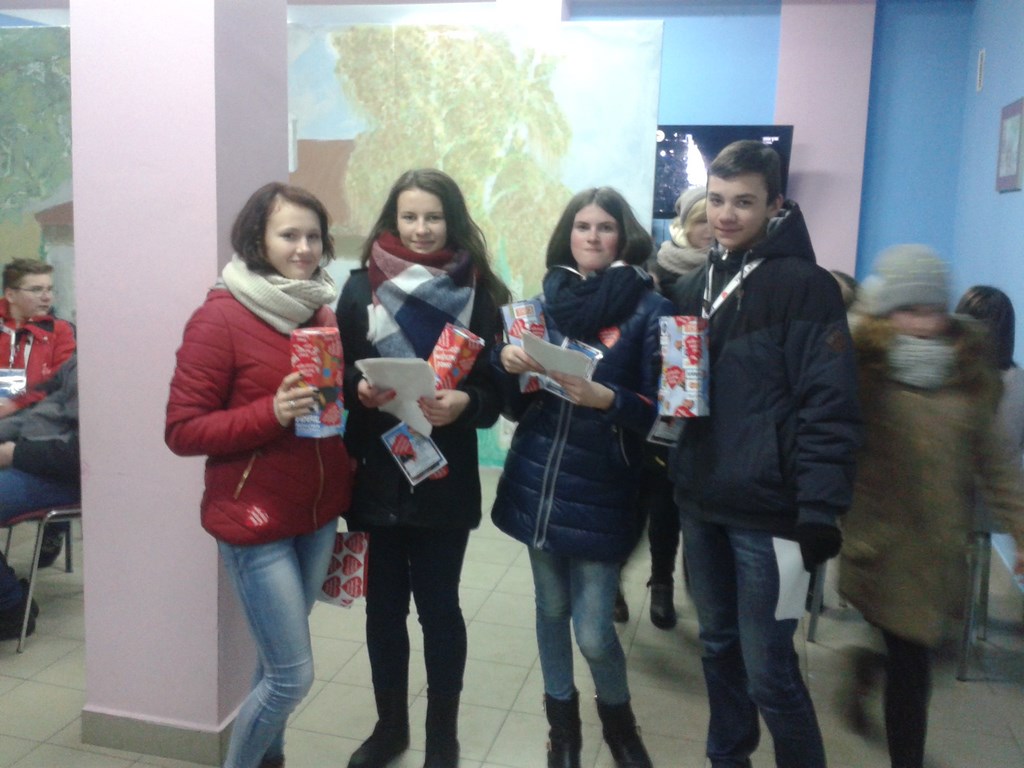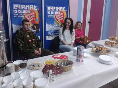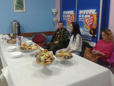 Nasi uczniowie – Katarzyna Ordak, Paulina Iwańska, Olga Szymaniak, Arkadiusz Konopka i Marcin Pędzich, zebrali w sumie 337.31 złotych do puszek. 117.12 złotych uzyskaliśmy ze sprzedaży ciasta, herbaty i kawy w Kawiarence przy pomocy następujących uczniów: Martyna Turowska, Kamila Chrzanowska, Piotr Święch.