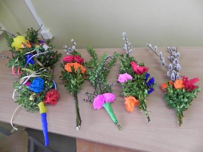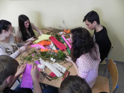 Warsztaty wielkanocne w naszej szkole odbyły się 16 marca 2016r. Poprowadzili je ksiądz Grzegorz i pani Larysa – przedstawicielka współpracującego z naszą szkołą Stowarzyszenia Tradycyjnie Nowoczesnych dla Wsi. Podczas zajęć uczniowie klasy I Zasadniczej Szkoły Zawodowej pod czujnym okiem instruktorów wykonali karty świąteczne i palmy wielkanocne z gałązek wierzbowych, zielonego bukszpanu i kwiatków z krepiny. Palmy te delegacja uczniów wraz z opiekunem przekazała mieszkańcom Domu z Sercem w Komorowie.