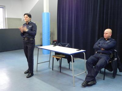 Policjanci profesjonalnie przybliżyli zagadnienia odpowiedzialności karnej nieletnich. Mówili o przejawach demoralizacji i czynach karalnych najczęściej popełnianych przez nieletnich oraz o konsekwencjach prawnych. Policjanci mówili też o czyhających zagrożeniach: alkohol, narkotyki, dopalacze. Baczną uwagę zwrócono na zjawisko cyberprzemocy, omówiono przy okazji zgodne z prawem zasady korzystania z telefonów komórkowych oraz Internetu.
