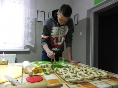 Święto Niepodległości jest w naszej szkole obchodzone trochę niestandardowo. W tym roku szkolnym uczniowie klasy I zasadniczej Szkoły Zawodowej – Mateusz Korytkowski, Bartłomiej Laska i Mateusz Rudnik upiekli rogaliki. Rogaliki miały owocowe nadzienie nie i były tak bogate w bakalie jak prawdziwe rogale marcińskie. Wyroby cukiernicze w kształcie końskich podków symbolizują postać Świętego Marcina, którego imieniny są 11 listopada. Nasze „Nieziemskie rogale” zostały upieczone według przepisu z poprzedniego roku – można go znaleźć przeglądając aktualności na naszej stronie.