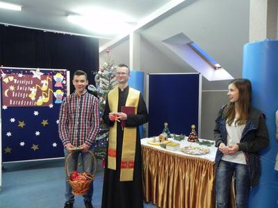 Wigilijne spotkanie w naszej szkole odbyło się 20 grudnia 2016r. i przebiegało w bardzo miłej i rodzinnej atmosferze. Wspólne kolędowanie i składanie bożonarodzeniowych życzeń, tego prawie ostatniego dnia w szkole, wprawiło wszystkich w świąteczny nastrój. Podczas spotkania uczniowie wzięli udział w bożonarodzeniowym quizie, który sprawdził ich wiedzę o tradycjach i zwyczajach nie tylko polskich, ale i z całego świata. Następnie Pani Dyrektor wręczyła nagrody w konkursie na najlepsze i najsmaczniejsze pierniki. Nagrodzono następujące zespoły: