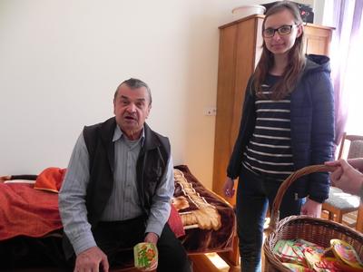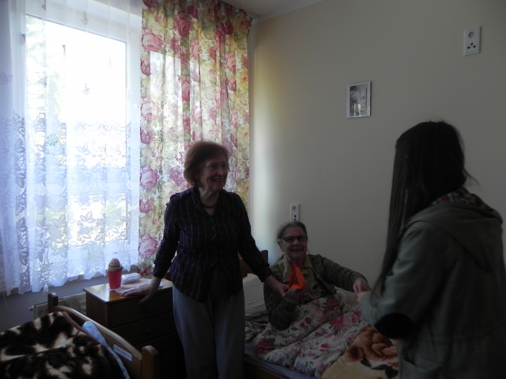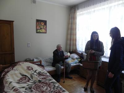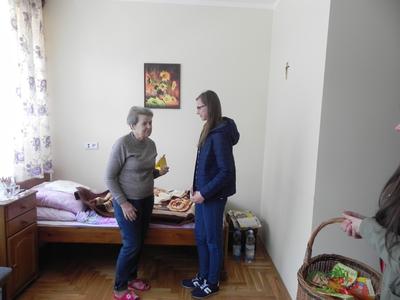 Uczennice naszej szkoły – Kasia Ordak i Sylwia Solińska – wraz z opiekunami odwiedzili „Dom z Sercem” w Komorowie. Dziewczynki złożyły życzenia wielkanocne wszystkim pensjonariuszom. Wręczyły wykonane przez uczniów świąteczne koszyczki z upieczonymi podczas warsztatów pierniczkami. Mamy nadzieję, że czas jaki spędziliśmy w domu pomocy społecznej choć na chwilę oderwał pensjonariuszy od dnia codziennego i przypomniał o naszej sympatii dla nich.