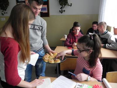 Warsztaty gastronomiczno-piekarskie przeprowadziła Pani Marianna Szredzińska wraz z dwójką naszych uczniów: Dominiką Książek i Fabianem Pędzichem z klasy I Zasadniczej Szkoły Zawodowej.
