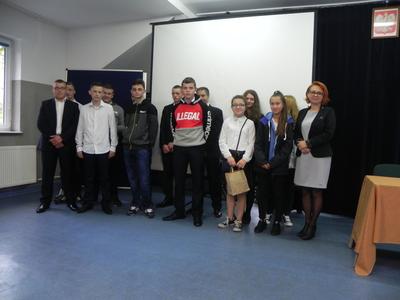 W dniu 4.09.2017r. o godzinie 900 odbyła się uroczystość rozpoczęcia nowego roku szkolnego 2017/2018. Wszystkich zebranych – uczniów, rodziców, nauczycieli i pracowników szkoły powitała Pani Dyrektor Dorota Stadnik. Tego dnia szczególnie ciepło powitani zostali nowi uczniowie naszej szkoły – klasa I Branżowej Szkoły I Stopnia. W tym roku zawodu uczyć się będą przyszli fryzjerzy, piekarze, stolarze, sprzedawcy, elektrycy i mechanicy pojazdów samochodowych. Uczennica klasy I – Dominika Pędzich, która pierwsza dostarczyła do szkoły wymagane dokumenty, otrzymała od Pani dyrektor drobny upominek.