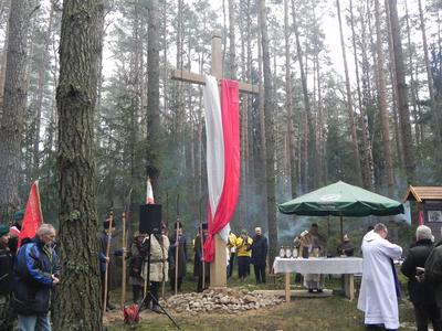 Miejsce to odnaleziono dzięki świadectwu 96 – letniego mieszkańca wsi Dybki – Morgi – Pana Mieczysława Grudzińskiego. W tym miejscu dawniej stał krzyż i również teraz wkopano wysoki, dębowy krzyż.