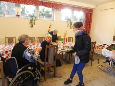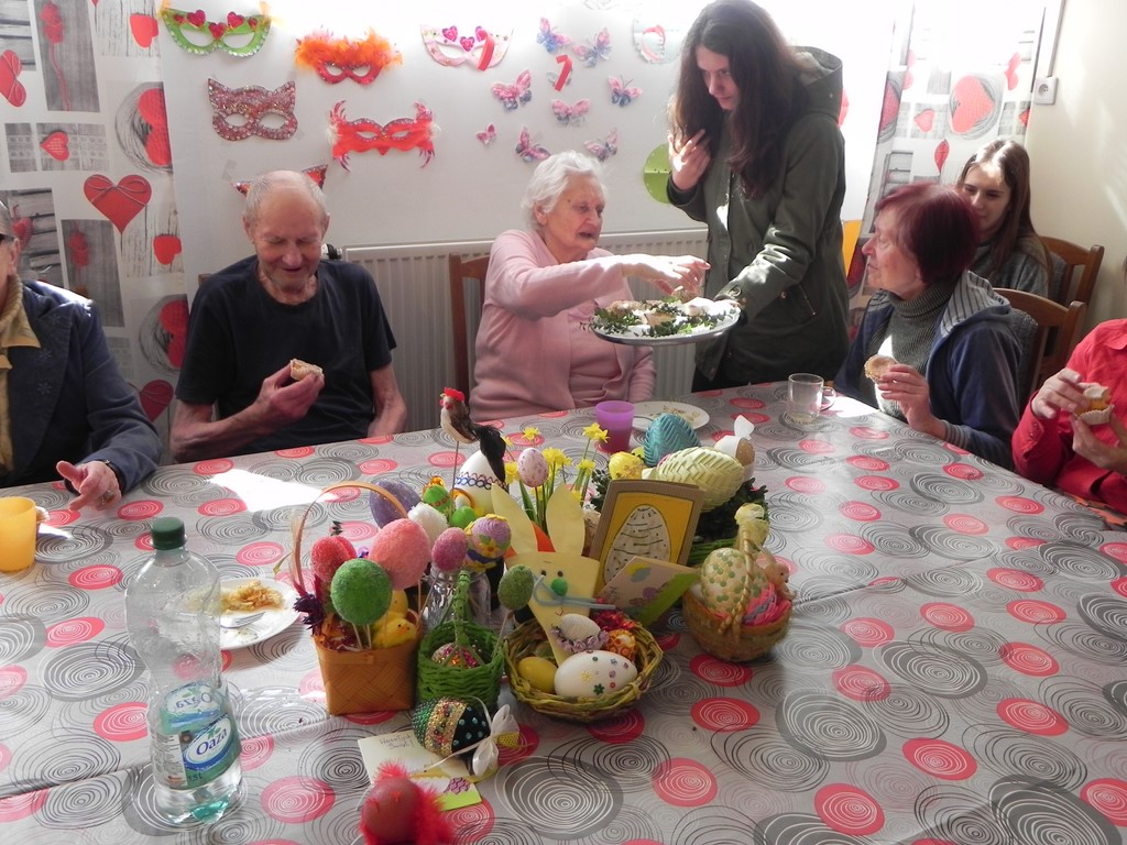 Gdy zbliżają się święta myślimy o bliskich. Nie mogło być inaczej i tym razem. Uczniowie – szkolni wolontariusze pamiętali o mieszkańcach „Domu z Sercem” w Komorowie. Upiekli baby i babeczki wielkanocne i pojechali złożyć życzenia świąteczne z okazji Świąt Wielkanocnych