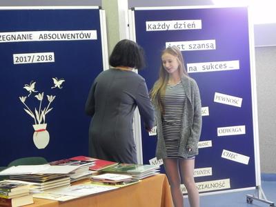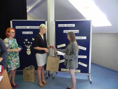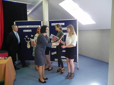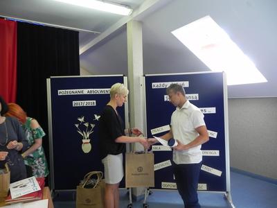 22 czerwca 2018r. o godzinie 9.00 uroczyście zakończyliśmy rok szkolny 2017/2018. Koniec roku to czas podsumowań naszych starań i wysiłków włożonych w naukę i pracę, ale też moment, kiedy szkolne mury opuszczają kolejni absolwenci. Tym bardziej miło było widzieć twarze zadowolone nie tylko ze zbliżających się wakacji, ale także z powodu osiągniętych wyników. A w tym roku szkolnym nasi uczniowie mieli się czym pochwalić. Pani Dyrektor podziękowała wszystkim uczniom za osiągniecie wysokich wyników w nauce i wręczyła nagrody: