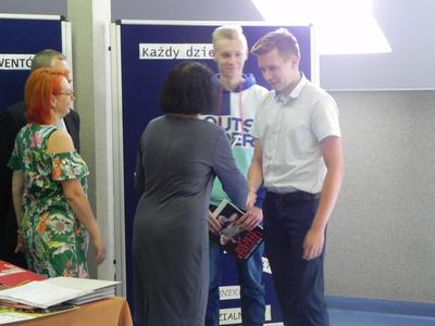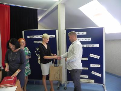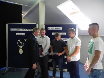 Nauczyciel przedsiębiorczości przyznał również absolwentom nagrody za pracę w Szkolnym Klubie Przedsiębiorczości i realizację projektów z dziedziny ekonomii, przedsiębiorczości i finansów uczniom klasy III ZSZ – Marcinowi Pędzichowi i Marcinowi Hałatience.
