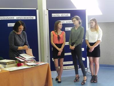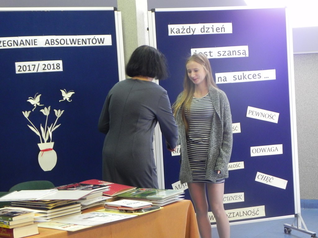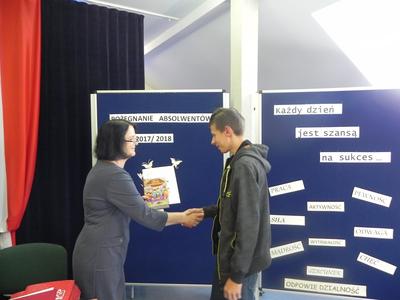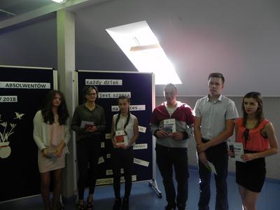 Nagrodę książkową za czytelnictwo otrzymali uczniowie: z klasy I BS I St. – Jakub Podolak i z klasy III ZSZ Sylwia Solińska.