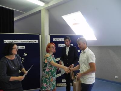 Nagrodę Starosty za szczególne zaangażowanie i pracę na rzecz szkoły otrzymał Marcin Pędzichz klasy III ZSZ.