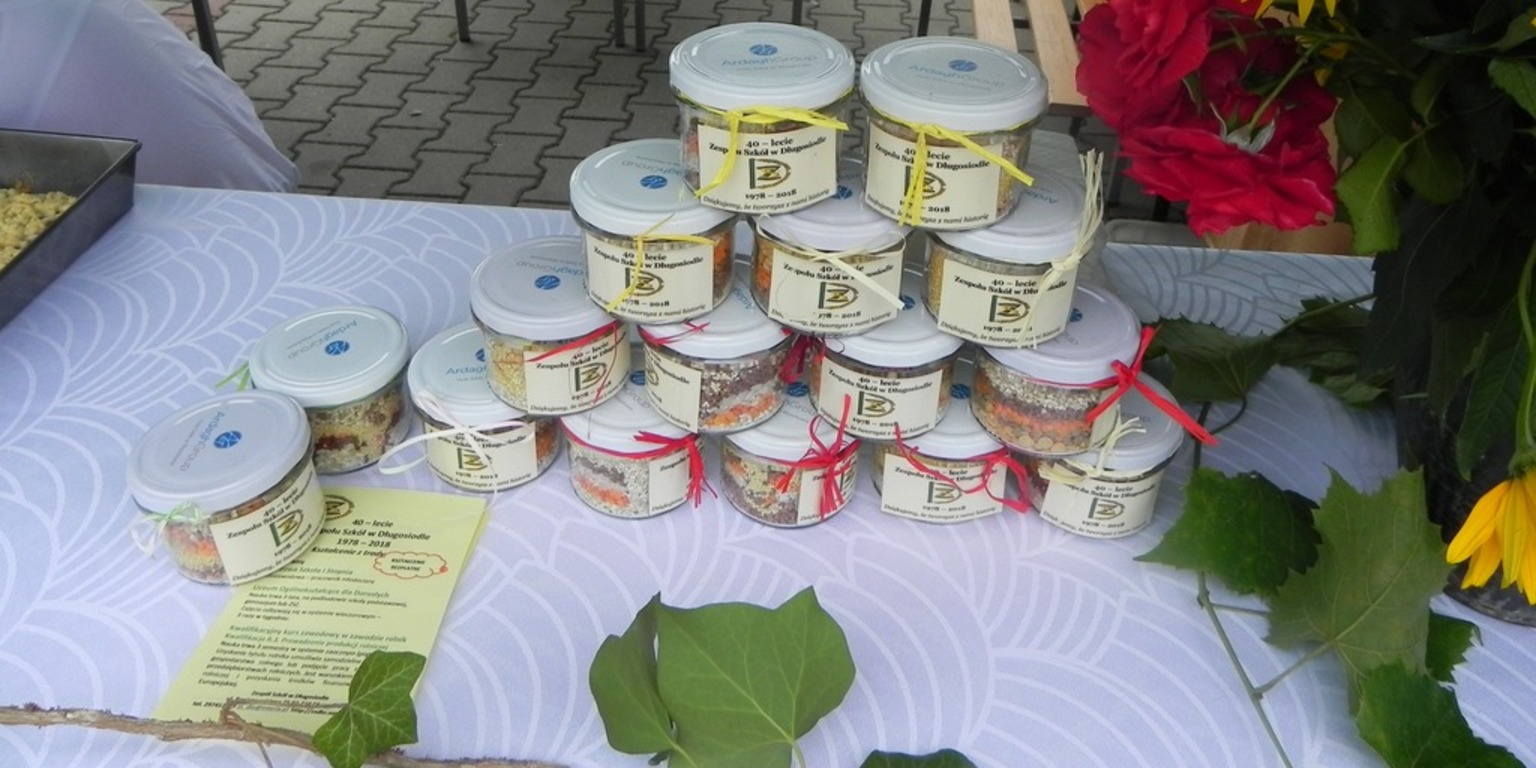 Grzybobranie 2018-09-19 9 września 2018 roku nasza szkoła wzięła udział w Wielkim Grzybobraniu w Długosiodle. Była to okazja aby pochwalić się jubileuszem szkoły. W tym roku nasza szkoła obchodzi 40-lecie swojej działalności. Dlatego też nasze stoisko przygotowane było właśnie pod tym kątem. Każdy z odwiedzających nas gości (absolwentów) mógł wpisać się do pamiątkowego zeszytu. Zebrane życzenia świadczą o tym, że nasi byli uczniowie mają wiele miłych i ciepłych wspomnień związanych z nauką. Każdy absolwent otrzymał również mała pamiątkę-niespodziankę. Był to słoiczek z nasionami różnych zbóż. Można było wykazać się umiejętnością rozpoznawania i nazywania zbóż. A jeżeli ktoś miał z tym problem, mógł liczyć na pomoc Pani Dyrektor Doroty Stadnik, która starała się służyć pomocą. Słoiczki nie tylko mają przypominać o naszej szkole, ale również mogą służyć za kuchenną ozdobę.
