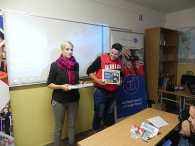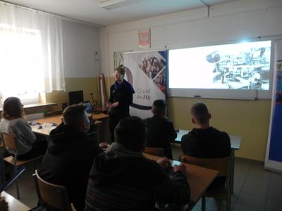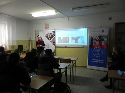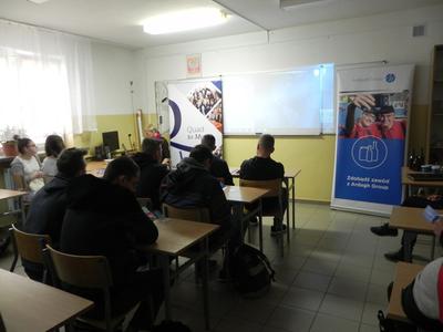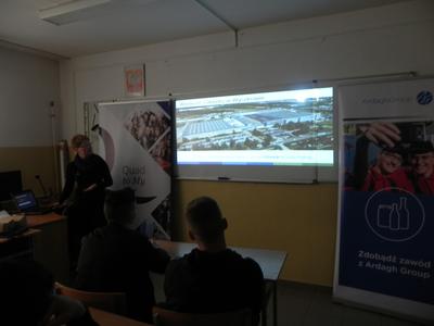 Gimnazjaliści mogli tego dnia także wysłuchać prezentacji pracodawców, z którymi szkoła współpracuje: Firmy Ardagh Glass z Wyszkowa, zajmującej się produkcją opakowań szklanych dla potrzeb przemysłu spożywczego, chemicznego i farmaceutycznego. Młodzież może odbywać praktyczną naukę zawodu jako ślusarz i elektryk. Przedstawicielka firmy Pani Olga Chrzczonowska zaprezentowała zawody oraz profity dla przyszłych pracowników młodocianych. Także przedstawicielka firmy Quad Graphics Pani Joanna Krzyżaniak opowiedziała młodzieży o tej największej i najnowocześniejszej drukarni na świecie. Zaprosiła do nauki w zawodach drukarz i mechanik, elektromechanik, introligator. Uczniowie odbywający praktyczną naukę zawodu w tych firmach mogą liczyć na dodatkowe profity, stypendia, płatne staże, możliwość rozwoju i zatrudnienia po zakończeniu nauki. Na podsumowanie prezentacji najbardziej aktywni słuchacze zostali nagrodzeni gadżetami z logo firm.