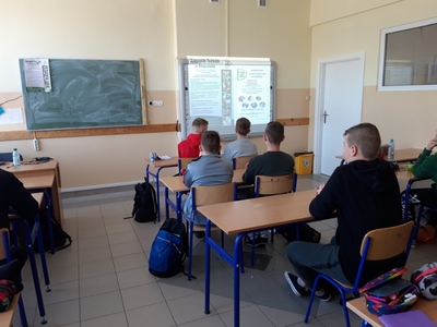 Podczas spotkania z doradcą zawodowym Beatą Sierzan uczniowie zapoznali się z ofertą edukacyjną szkoły a także z możliwościami, jakie daje wybór Branżowej Szkoły I Stopnia, praktycznej nauki zawodu u pracodawcy oraz z zawodami, w jakich mogą się kształcić. Poznali także misję naszej szkoły „ Uczymy zarabiać pieniądze w zwodzie. Kwalifikacje i doświadczenie zdobyte dziś, pewna praca jutro”. Ósmoklasiści z zainteresowaniem obejrzeli przygotowaną dla nich prezentację „ Ósmoklasisto – wybieraj z głową – zawodowo. Twój wybór – Twoja przyszłość”, zadawali pytania, wykonali test zawodoznawczy.