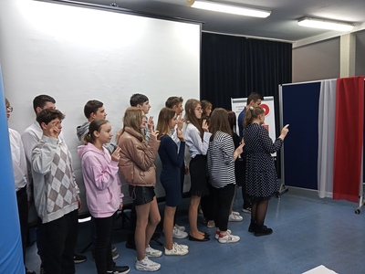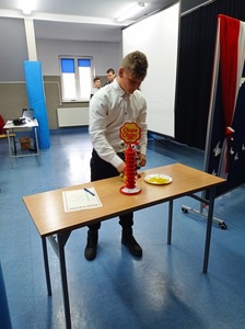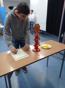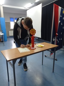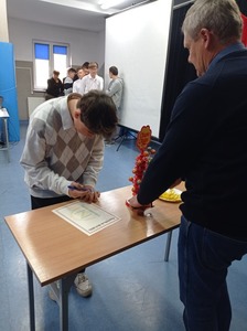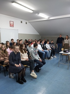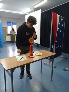 Dlatego też nasi uczniowie zostali poddani testowi zawodowemu pt. „Zgadnij, kto to…”. Przedstawione charakterystyki zawodu rozbawiły wszystkich zebranych. Pierwszoklasiści zdali test ze znajomości zawodów.