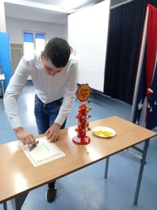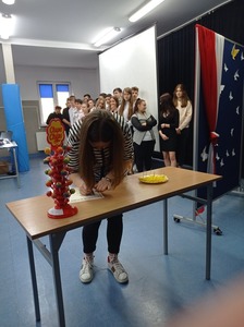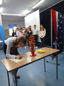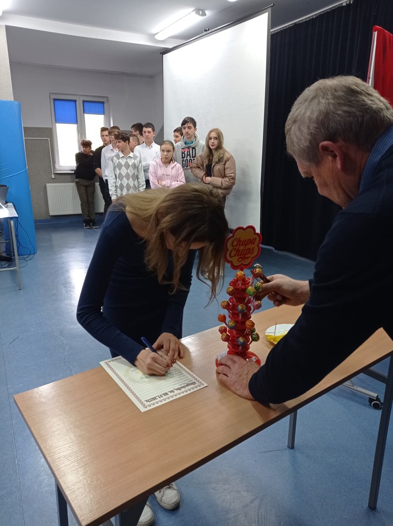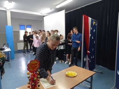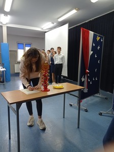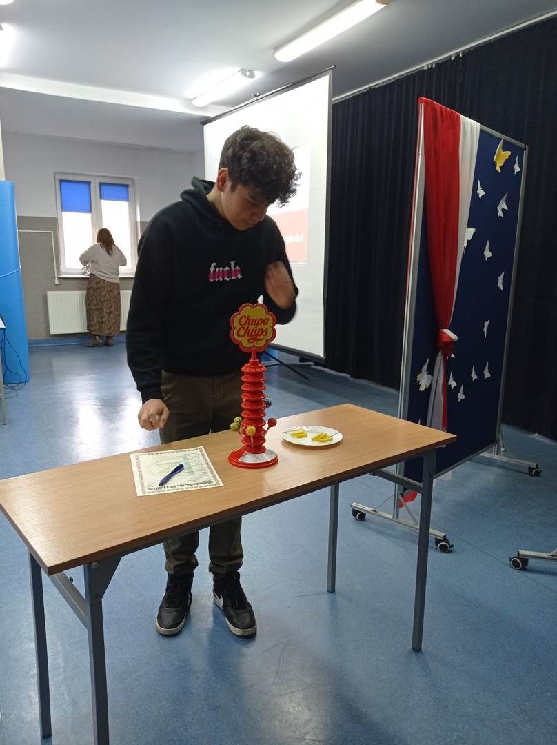 Podpisując akt ślubowania uczniowie zmierzyli się z przygotowanymi dla nich plasterkami cytryny, które musieli przyjąć z uśmiechem na twarzy. Jednak na osłodę Pani Dyrektor przygotowała małe co nieco.