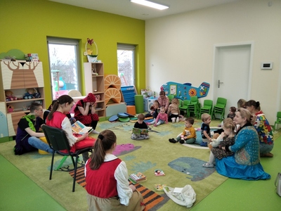 1 lutego 2023 r. wolontariusze z naszej szkoły odwiedzili maluchy w Żłobku Gminnym w Długosiodle. Przebrani w stroje postaci z bajek, o które zadbały panie z Hufca Pracy w Wyszkowie uczniowie czytali dzieciom bajki. Wizyta sprawiła wiele frajdy nie tylko maluchom, ale także samym czytajacym. W podziękowaniu lektorzy otrzymali od pracowników żłobka słodki upominek.