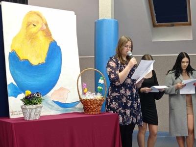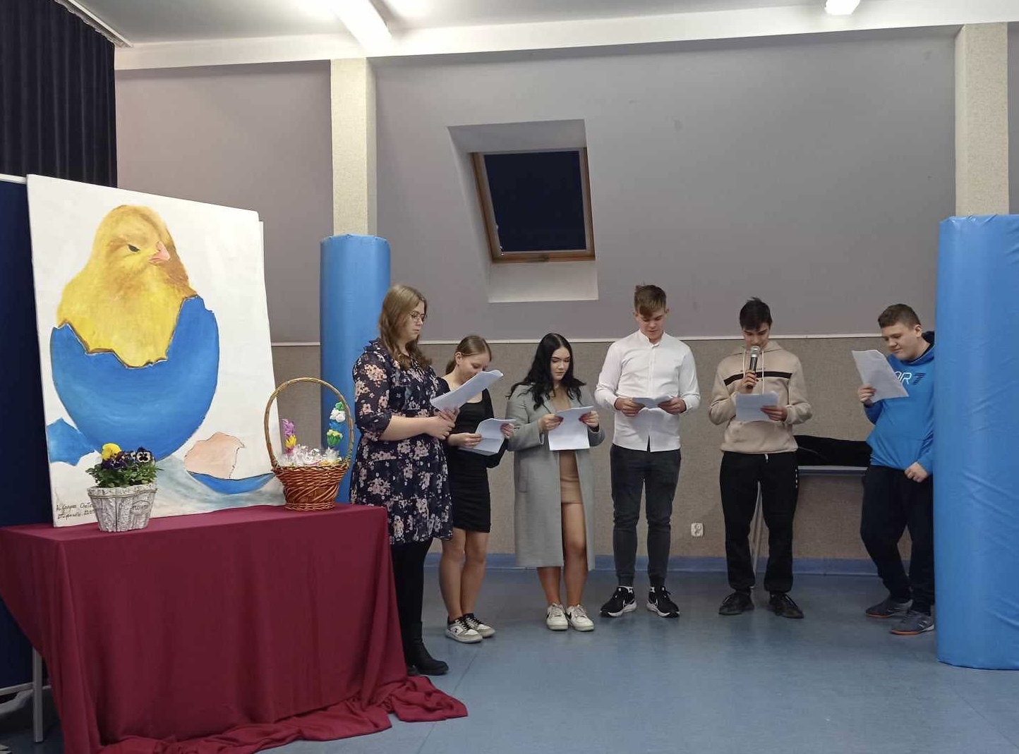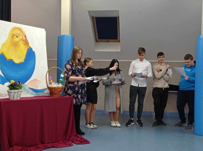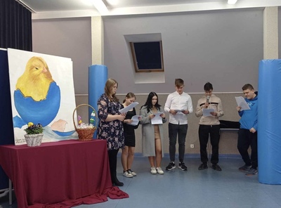 26 marca 2024r spotkaliśmy się z okazji zbliżających się świąt wielkanocnych. Tradycje i zwyczaje związane z tym świętem przybliżyła nam klasa I, która pod kierunkiem Pani Dyrektor przygotowała krótki apel. Na koniec wraz z życzeniami wszyscy zostali obdarowani czekoladowym jajkiem.