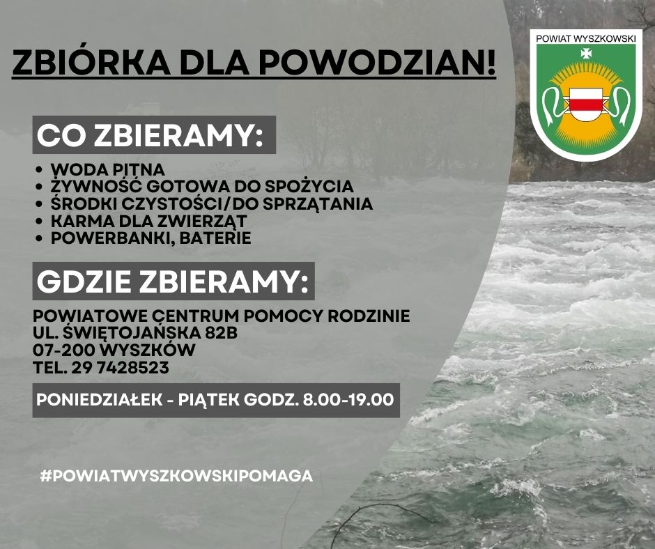 rozpoczynamy zbiórkę najpotrzebniejszych rzeczy dla mieszkańców najbardziej poszkodowanych przez powódź terenów.