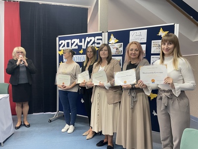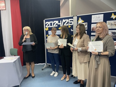 Oprócz nagród dla nauczycieli i pracowników szkoły Pani Dyrektor wręczyła także stypendia uczniom, którzy promują placówkę w środowisku lokalnym.