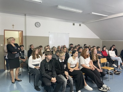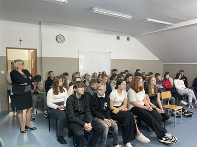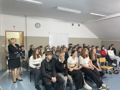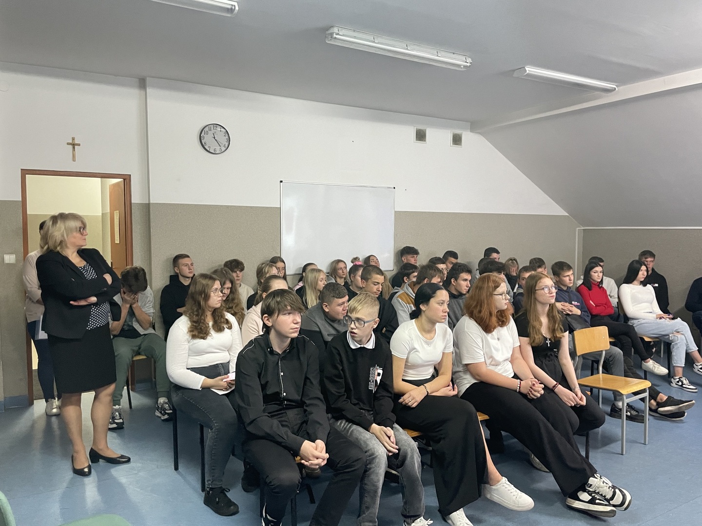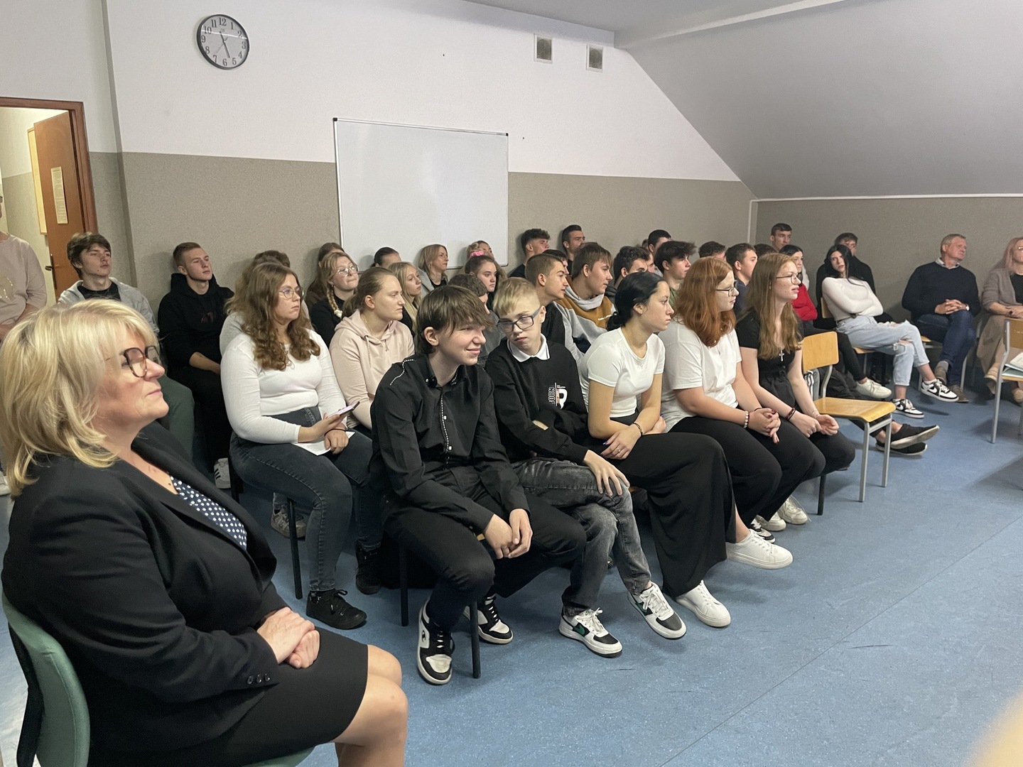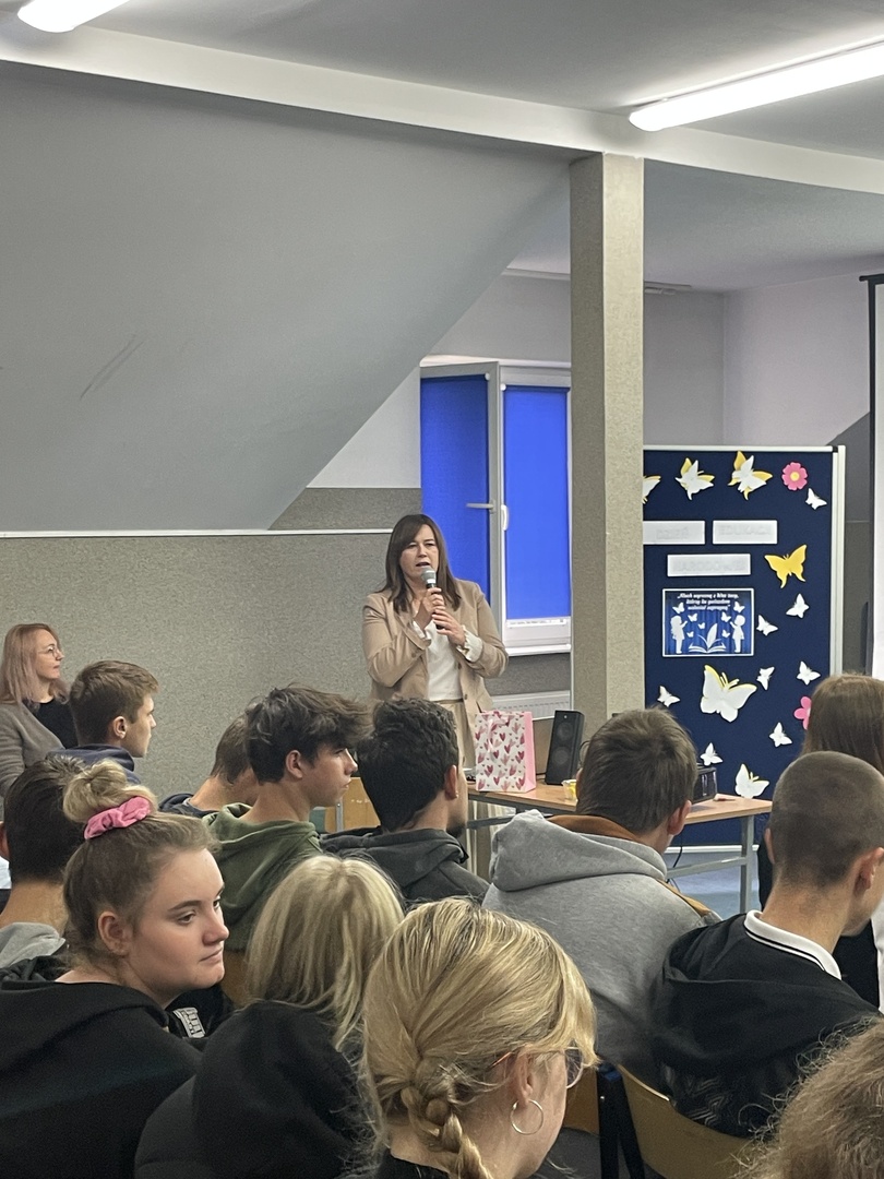 Głos zabrały także uczestniczące w spotkaniu Komendant Młodzieżowego Biura Pracy i Ochotniczego Hufca Pracy w Wyszkowie, Pani Edyta Pliszka, Pośrednik Pracy Pani Beata Drapała, które swoim wykładem zainaugurowały w naszej szkole Ogólnopolski Tydzień Kariery.