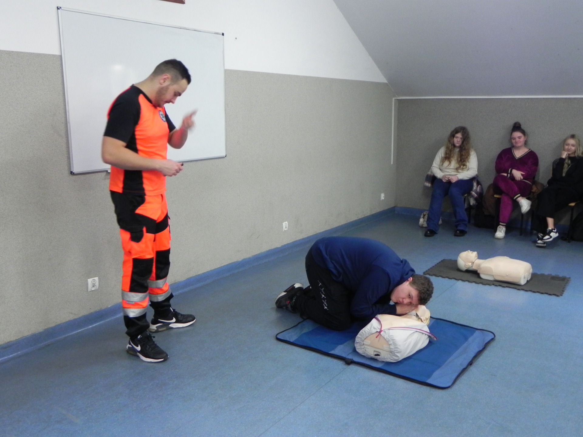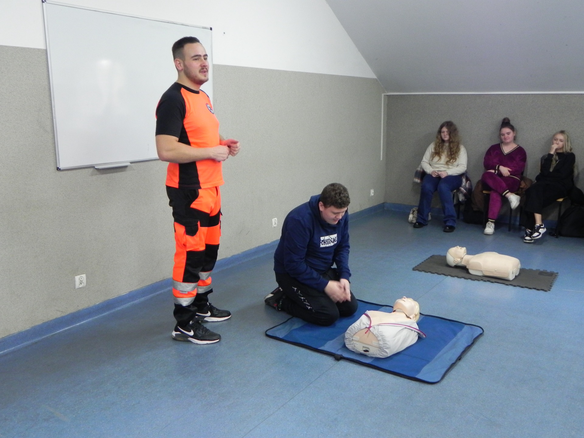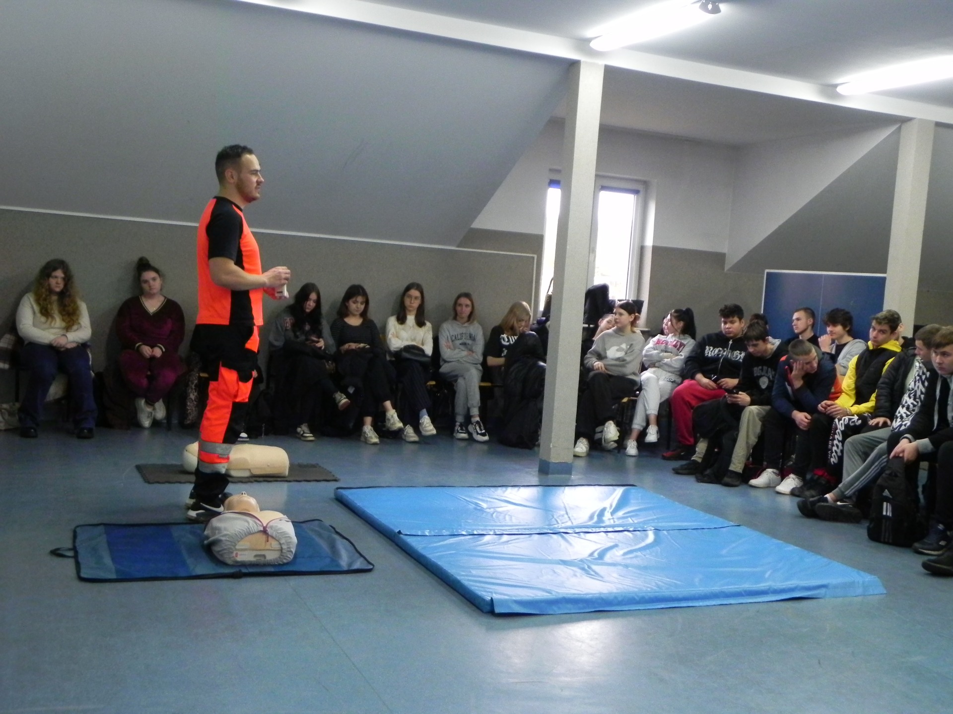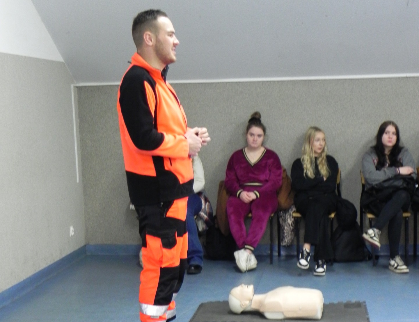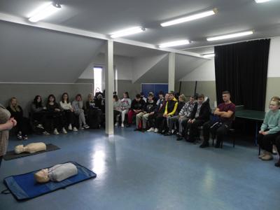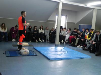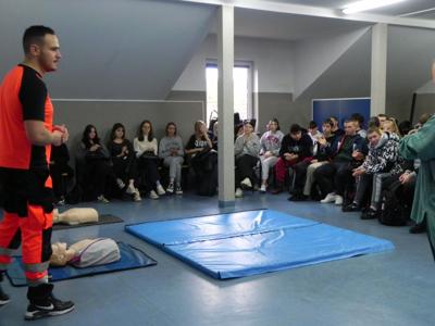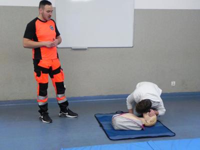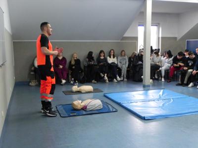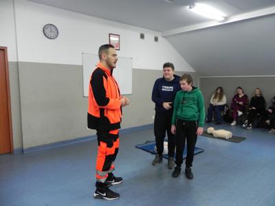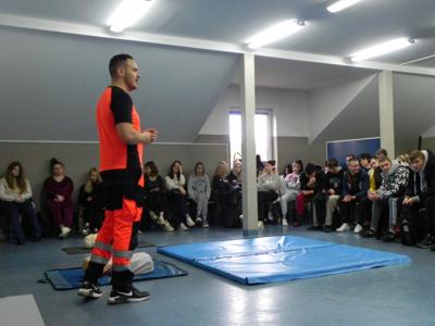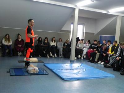 W naszej szkole odbyło się niezwykle inspirujące spotkanie z ratownikiem medycznym, który podzielił się z uczniami historią swojej kariery zawodowej. Opowiedział o początkach swojej pracy, wyzwaniach, jakie napotkał, oraz o satysfakcji, jaką czerpie z niesienia pomocy innym. Ratownik przeprowadził także pogadankę na temat znaczenia pierwszej pomocy i jej roli w ratowaniu życia. W interesujący i przystępny sposób przedstawił podstawowe zasady udzielania pomocy w nagłych wypadkach. Uczniowie mieli okazję przypomnieć i utrwalić sobie, jak reagować w sytuacjach zagrożenia, takich jak omdlenia, złamania, zatrzymanie oddechu czy krążenia. Przy tej okazji nasi uczniowie również wykazali się wiedzą i chętnie udzielali odpowiedzi na pytania dotyczące różnych sytuacji. Podczas spotkania odbył się również praktyczny instruktaż, w trakcie którego uczniowie mogli samodzielnie przećwiczyć techniki reanimacji. Ratownik podkreślił, jak ważna jest wiedza na temat pierwszej pomocy i jak każdy może przyczynić się do ratowania życia. Spotkanie zakończyło się sesją pytań i odpowiedzi, podczas której uczniowie mogli rozwiać swoje wątpliwości i dowiedzieć się więcej o pracy ratownika medycznego. Całe wydarzenie było niezwykle pouczające i z pewnością na długo pozostanie w pamięci uczestników.