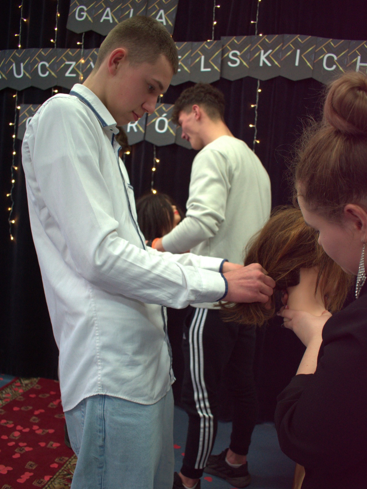 Kolejne konkurencje obejmowały m.in. układanie słów w odpowiedniej kolejności oraz rozpoznawanie przedmiotów codziennego użytku, związanych z makijażem. A na sam koniec trzech ochotników przystąpiło do wykazania się w robieniu warkocza.