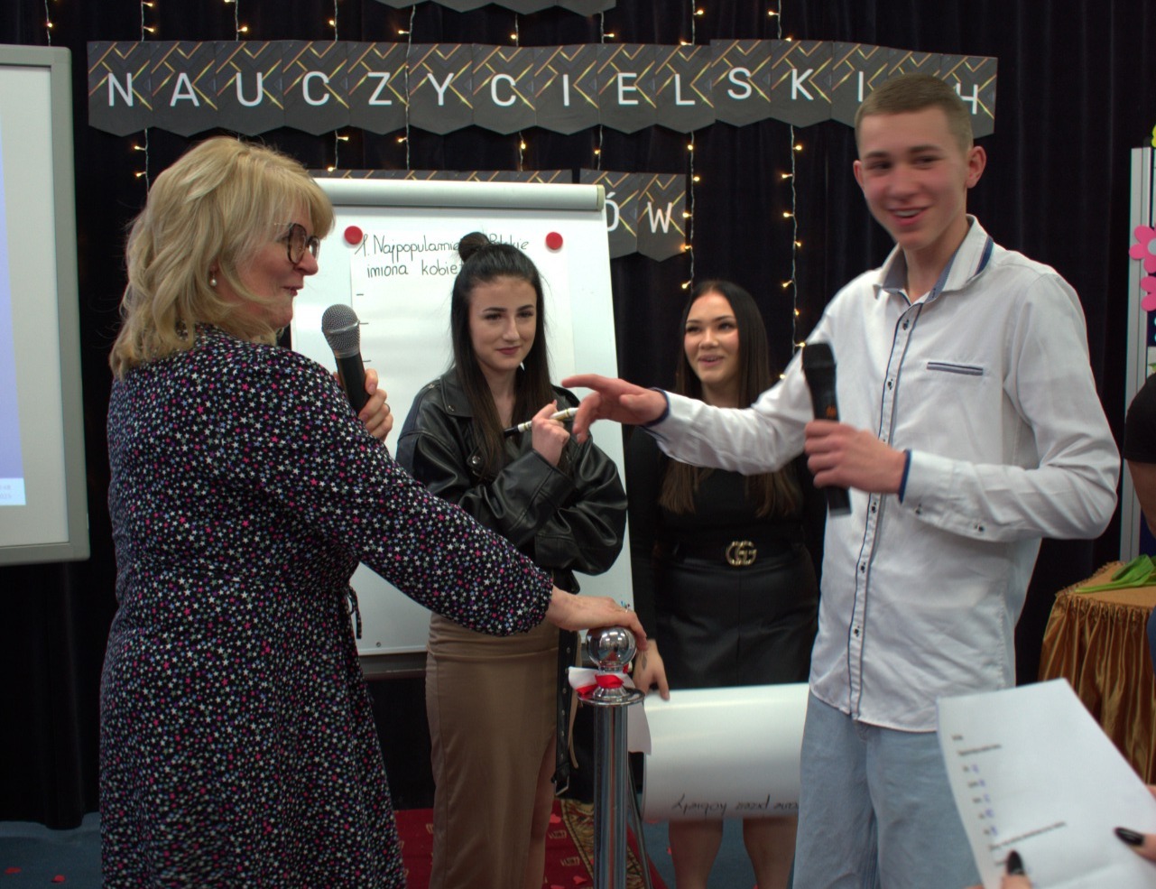 Jednym z punktów programu była gra „Zgadnij, kto to”, podczas której odgadywaliśmy, kto kryje się na zdjęciach z dzieciństwa. Nie zabrakło również emocjonującej „Familiady”, w której nauczyciele zmierzyli się z uczniami.