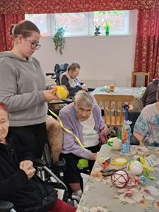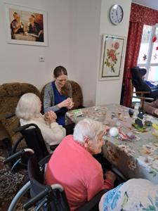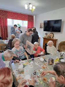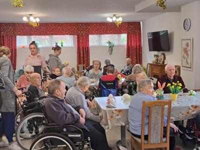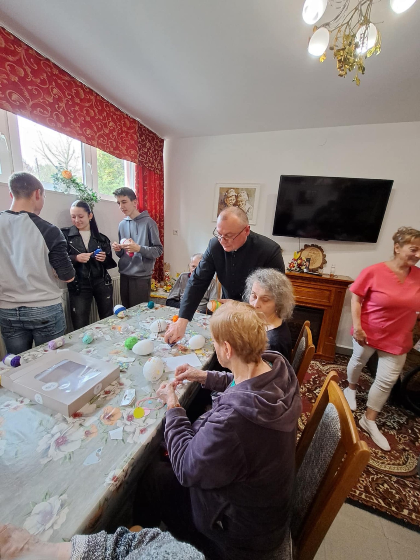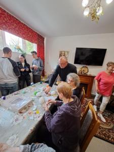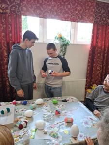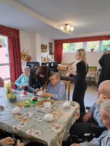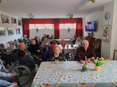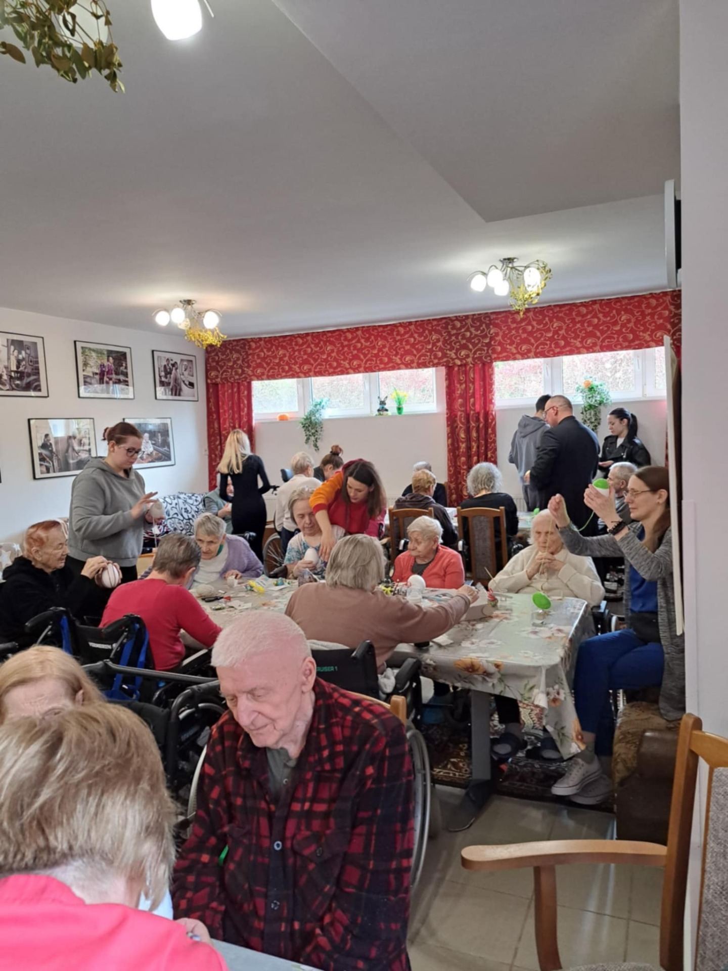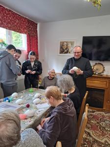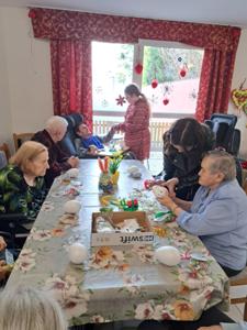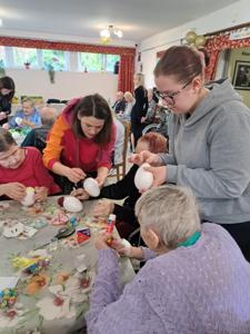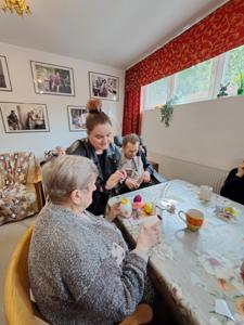 Wspólne przygotowywanie świątecznych pisanek, wielkopostne pieśni przy akompaniamencie gitary stało się okazją do międzypokoleniowej integracji i wprowadziło wszystkich w radosny, świąteczny nastrój.