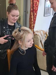 Na zakończenie Panie mogły zadbać o świąteczny wygląd i poddać się metamorfozie wykonanej przez uczennice uczące się w zawodzie fryzjer.