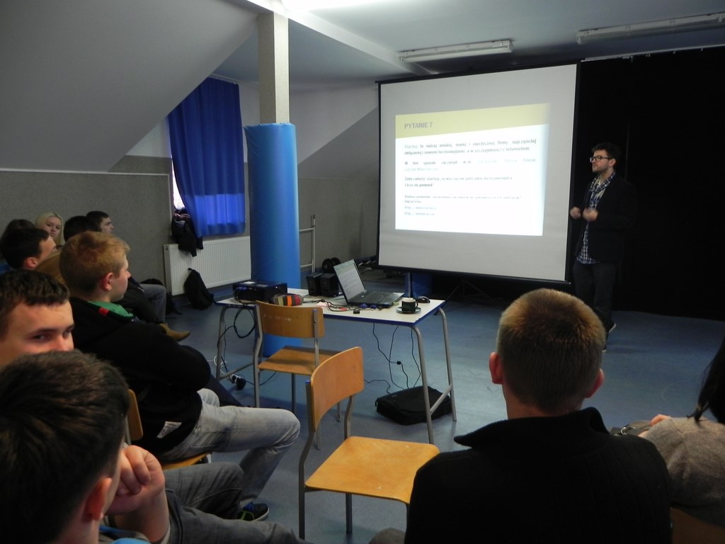 Które zawody są najbardziej przyszłościowe? Gdzie się uczyć? Co studiować, aby w przyszłości mieć nie tylko pracę, ale i satysfakcję z tego, co się robi? Odpowiedzi na te i wiele innych pytań związanych z planowaniem swojej kariery zawodowej szukali uczestnicy spotkania z Pawłem Stempniakiem – PR-owcem i ekspertem komunikacji w nowych mediach, przedsiębiorcą, trenerem i wykładowcą. Spotkanie odbyło się w naszej szkole 25 marca 2014 roku.