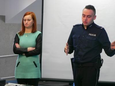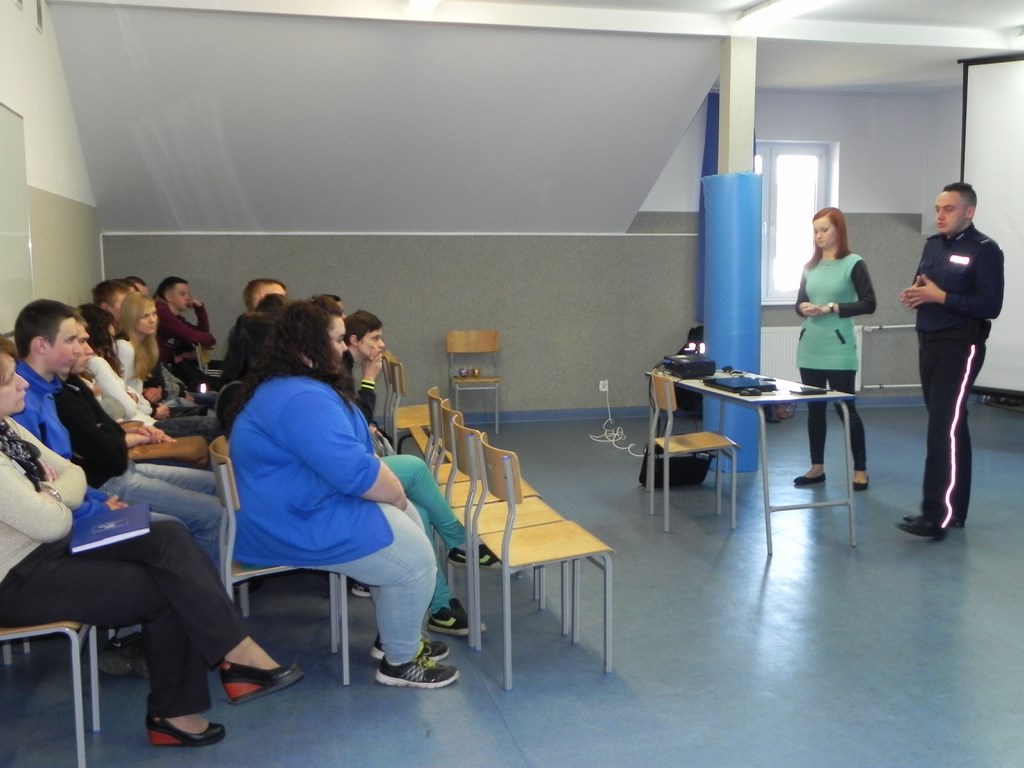 We wtorek – 8 kwietnia 2014 roku – odbyło się w naszej szkole spotkanie z policjantami – przedstawicielami Komendy Powiatowej Policji w Wyszkowie – panią Natalią Siatkowską i panem Damianem Wroczyńskim, w którym wzięli udział uczniowie klasy I i II ZSZ. Celem spotkania było przeciwdziałanie zachowaniom demoralizującym.